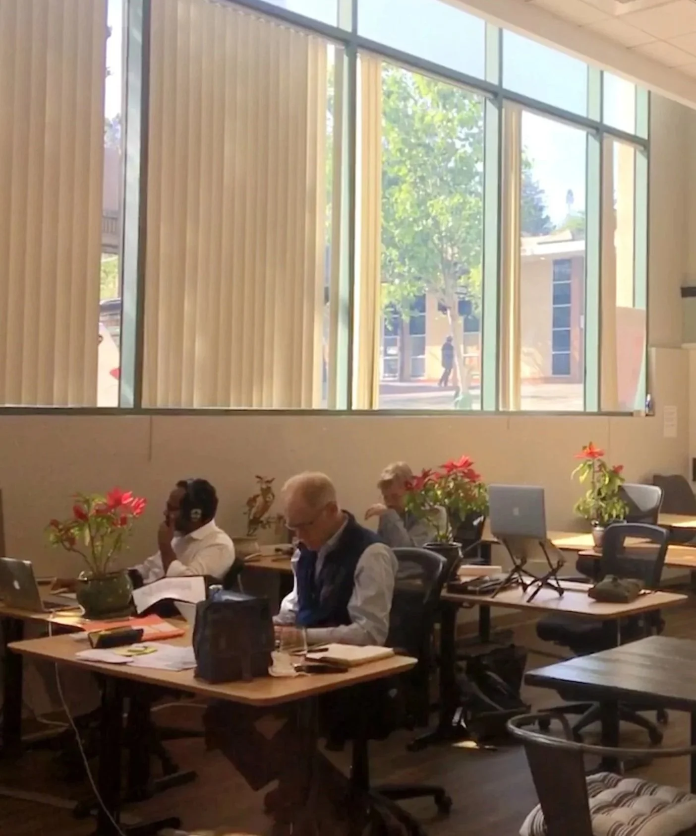 - Ergonomic seating + adjustable standing desks